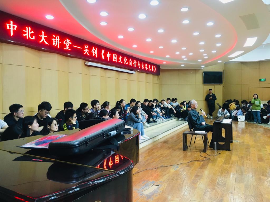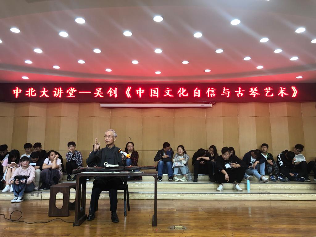 2019年5月16日上午,由中北大学学生工作部(处)主办,艺术学院承办的中北大讲堂第119期在艺术学院东排练厅举办。本次大讲堂邀请到著名古琴家兼音乐史家、中国艺术研究院博士生导师吴钊教授做了主题为《中国文化自信与古琴艺术》的专题讲座。吴钊先生为现场师生及琴友带来了一次高水平的中华传统文化盛宴。